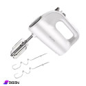 Electric hand mixer, made of durable plastic, with two stainless steel kneading and whisking beaters, used to beat eggs and cream and mix ingredients together