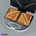 Sandwich maker made of heat-insulated plastic body, non-stick stainless steel plates that prevent bread slices from sticking and allow easy cleaning
