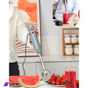 A blender with a distinctive vertical design that allows access to various types of deep bowls, used for mixing and cutting fruits and vegetables, made of stainless steel blades that do not rust