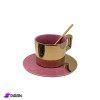 A rounded cup made of porcelain, high quality and break-resistant, and comes with a spoon and a rounded Saucer also made of porcelain. It comes in a medium size, ideal for coffee or espresso and many other hot drinks that you prefer