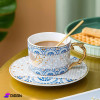 A round cup made of high-quality, break-resistant porcelain, and comes with a saucer and spoon, with a distinctive Squares design and a medium size, so that it is ideal for coffee or espresso and many other hot drinks that you prefer