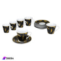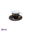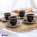 A set of coffee cups and saucers made of high-quality porcelain, which maintains the heat of your coffee for a long time so that you can enjoy your coffee time until the end, The set is made with precision and fine craftsmanship, with a scratch-resistant golden feather design, and a comfortable handle to hold the cup, in addition to its perfect size and weight