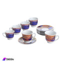 A set of coffee cups and saucers made of high-quality porcelain, which maintains the heat of your coffee for a long time so that you can enjoy your coffee time until the end, The set is made with precision and fine craftsmanship, with a galaxy drawing, and a comfortable handle to hold the cup, in addition to its perfect size and weight
