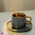 A cup made of ceramic, characterized by an elegant, beautiful, and eye-catching design. It comes in gray on the outside and is painted on the inside in gold, which gives it an elegant and wonderful touch.