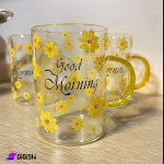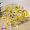 A glass cup with a distinctive and beautiful design with a drawing of roses. It is made of the finest types of transparent glass. It is useful for daily use and for all drinks. It is characterized by the appropriate size and thickness to maintain the temperature of drinks