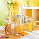 Glass set with pitcher, suitable for water, juices, soft drinks, etc., dishwasher safe, durable colors that will not spoil even after repeated use