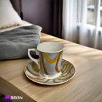 Coffee cups and saucers set made of high quality materials, keeps your coffee hot for a long time so you can enjoy your coffee until the end, the set features an elegant and distinctive design made with precision and excellent craftsmanship, a comfortable handle to hold the cup, in addition to the perfect weight and size