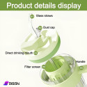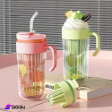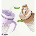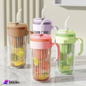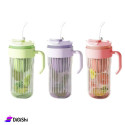 Grooved Glass Mug with Plastic Lid and Strainer and Glass Straw