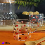 This 6-piece cup set is made of high-quality, durable, and lightweight Pyrex. It features a beautiful, elegant heart-patterned design