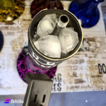 A small ice Hubble Bubble consisting of a stem made of food grade chrome and containing a bowl to put ice, which helps cool the smoke and make it softer on the throat, and a base to put water so you can place the Hubble Bubble on the table or the floor