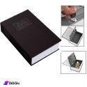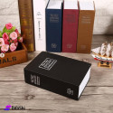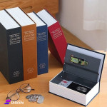 A box with a distinctive design that comes in the shape of a book. It is used to store jewelry, money, and many important things. It comes with a lock to protect against theft and for greater security.