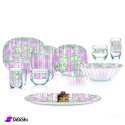 It also contains, among the pieces, cups, mugs, yogurt and glass plates to give the table a look of elegance and happy colors. The jug and cups can be used to serve water or juices