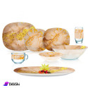 It also contains, among the pieces, cups, mugs, yogurt and glass plates to give the table a look of elegance and happy colors. The jug and cups can be used to serve water or juices