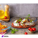 A bowl made of high-quality, multi-purpose, durable and heavy-duty heat-resistant glass suitable for long-term use, non-stick and scratch-resistant, in addition to the depths suitable for many types of foods as they prevent spilling, it also features a practical and convenient design, and comfortable handles for removing it from the oven, suitable for a family meal