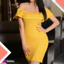 A very popular and fashionable off-shoulder women's short dress, made of cotton, suitable for the summer with a high temperature