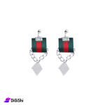 A pair of women's earrings, designed in a unique shape, as it consists of 2 pieces, in the shape of silver chains and squares, to add a touch of elegance and modernity to your final style