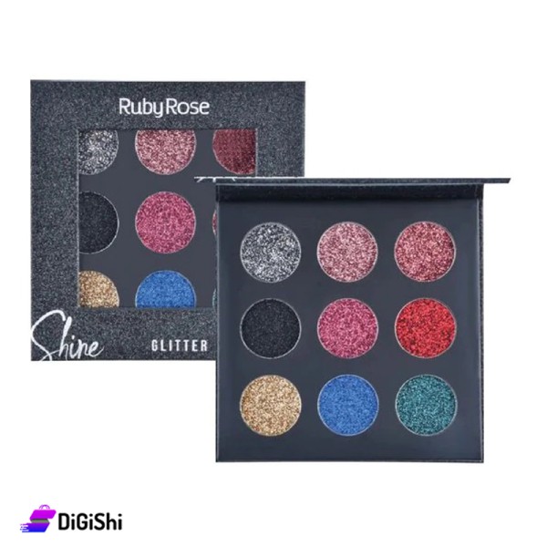 A pressed shimmer eyeshadow palette with 9 shades of pure shimmer, perfect for those who love sparkle, the palette contains neutral and colorful tones, such as silver, gold, purple, pink, green, red, black and blue, which can create a gorgeous makeup