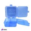 Plastic Lunch box with 2 hinged compartments, the base is divided into 3 sections.