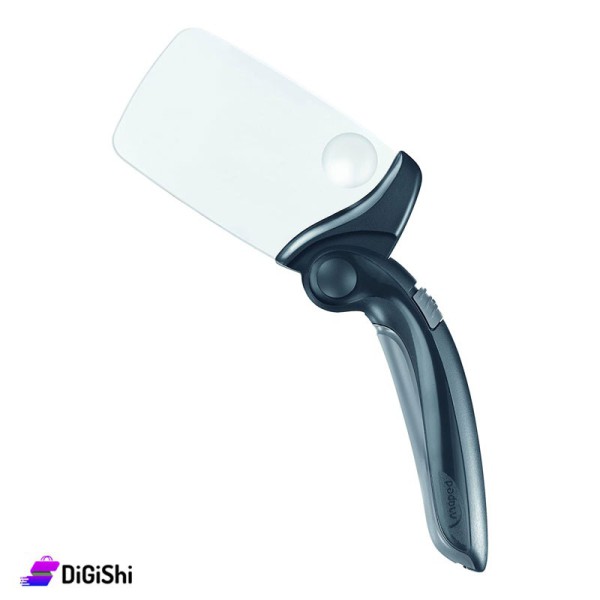 Rectangular frameless magnifier with a magnification of 2 times of the main size and a rotating inner lens of 6 times, it also has an ergonomic handle adjustable in four positions for comfortable use