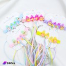 House and a Girl Shape Hair Clip made of metal with plastic graphics, in addition to colored satin ribbons and a ribbon with colored pearl beads, suitable for daily activities at home, or for daily outings such as shopping and work
