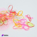 A set of silicone hair ties with a girl case that ensures that the elastics are kept from getting lost and damaged, in different bright colors that enable you to choose the appropriate hair styles, it has good elasticity, it is also comfortable and holds the hair strands tightly
