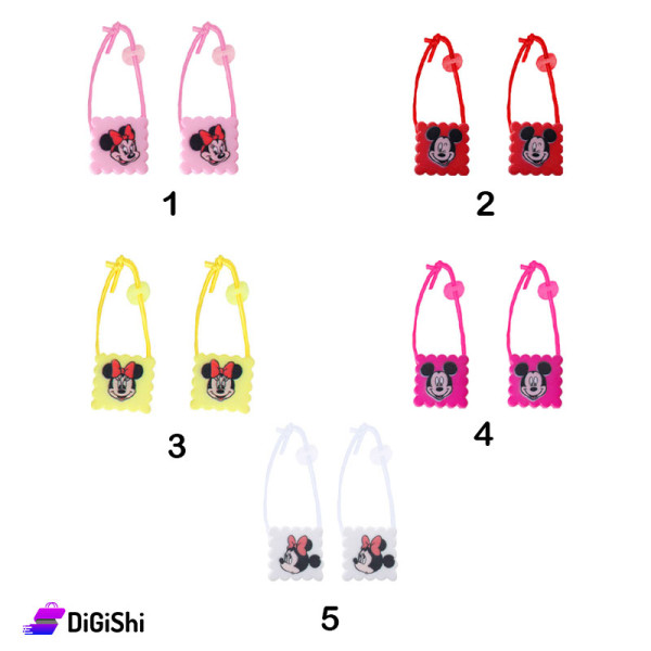 A Pair Of Girl's Hair Ties square With Mini Mouse Drawing