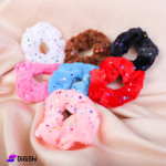 hair Scrunchies that are Very Soft and Fine Quality, Decorated with shiny colorful dots, with unique print, very elastic without damaging your hair, Easy To Carry In Purse Or Workout Bag