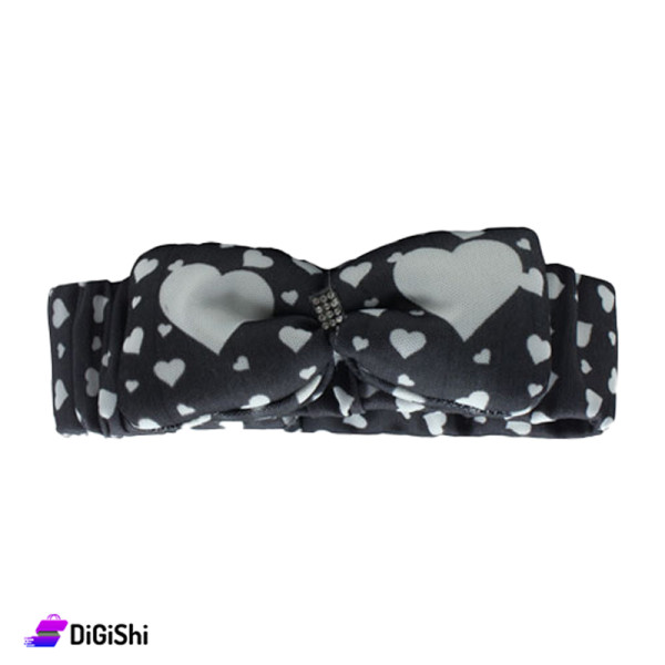 High quality hair bond with a bow and strass, along with white hearts prints, It is flexible, comfortable to the head and can be matched with a variety of clothes