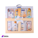 It also includes baby powder, cologne with a refreshing scent, skin protection cream, ear cleaning sticks, moisturizing body lotion, and scented wipes.