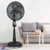 An electric fan with a high-performance motor, it contains five blades and a dynamic air grille for 30% more powerful and fresh air, it also contains a timer, three operation systems, and four speeds