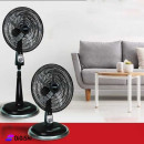 An electric fan with a high-performance motor, it contains five blades and a dynamic air grille for fresh and strong air by 30%, it also contains three operating systems in addition to four speeds, it works on an external battery provided to connect it to an internal battery