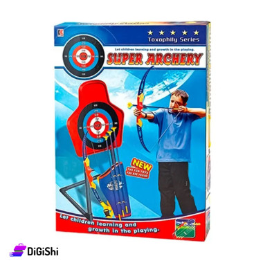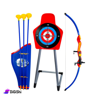 Archery Set for Kids Consists of a bow, a set of arrows, a shooting board with a base, and an arrow bag. Arrows come with rubber tips for safety. Develops skills and enhances concentration, accuracy, and hand-eye coordination.