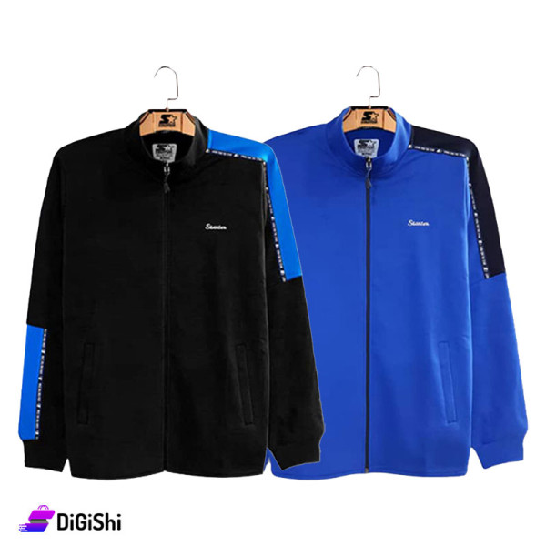 A men's sports jacket made of very comfortable cotton and a little polyester, with a beautiful design, with a zipper along the length of the jacket, in addition to two front pockets to protect your hands from the cold of winter and your personal belongings can be placed in them