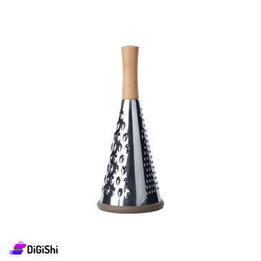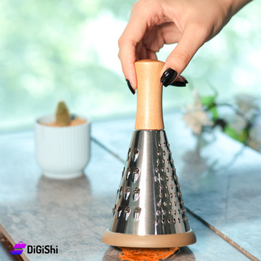 Round hand grater Small in size Made of stainless steel Beautiful design with wooden handle It has three sides