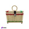 A multi-use basket, made of flexible plastic and durable wood, made with high craftsmanship, with a distinctive design and beautiful colors, it contains one main layer with wooden floor and bases, with a wooden handle to make it easy to carry, in addition to a leather strap with a metal clasp to close it tightly