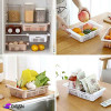 Expandable plastic refrigerator drawer, it features a sliding design and easy to slide in and out, so that its drawer-shaped and retractable design increases storage space to accommodate more foods, this refrigerator drawer can save space, keep food fresh, and organize food, drinks and small parts