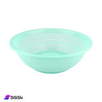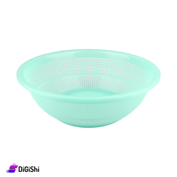 A soft strainer made of strong and durable plastic, designed in a circular shape. It is multi-purpose, as you can use it to filter vegetables and fruits from water, or to put vegetables and fruits inside it