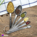 Measuring spoons made of durable, rust-resistant stainless steel. They consist of 6 pieces of different measurements. They are used to determine the amount of ingredients such as salt, spices, legumes, and all types of foods, and to measure the ingredients of sweets easily.y