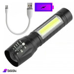 Battery-operated and rechargeable flashlight, small and lightweight, so it can be used at all times and places