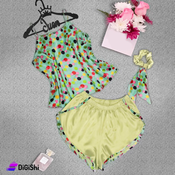 Women's pajamas made of satin with a hair tie