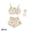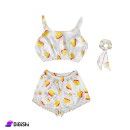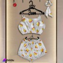 Women's pajamas made of satin, consisting of shorts, a cropped top and a hair tie