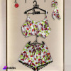 Women's pajamas made of satin, consisting of shorts, a cropped top and a hair tie