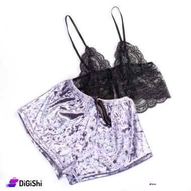 Women's pajamas made of satin, consisting of shorts, a cropped top and a hair tie