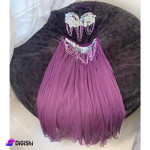 A dance suit that attracts attention thanks to its luxurious design and beautiful color that will ensure highlighting your beauty and femininity. It consists of two pieces, a bra embroidered with silver coins that make a sound when it moves, which gives it a charming and wonderful touch, and a long chiffon skirt.