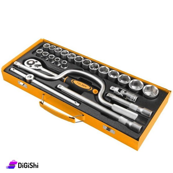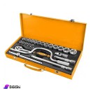 Pieces: 18pcs 1/2 sockets, 2pcs extension rods, automatic tie-down lever, curved tension lever, speed grip, tension lever