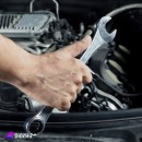 Dual function fixed wrench, at one end there is a 12mm open end fixed wrench. On the other end it has a 12mm ratchet