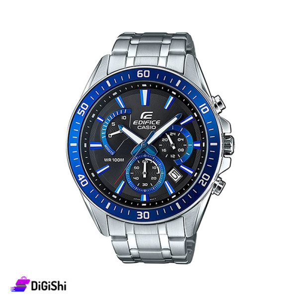 Men's wrist watch with an elegant, eye-catching design, made of high-quality stainless steel, this watch features a durable case, a modern bracelet with a buckle closure, and an elegant black dial with a navy blue frame, which gives it a modern touch, and makes it suitable for wearing on many occasions