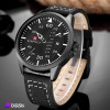 Men's wrist watch, with a modern and elegant design, made of a durable leather strap that is crack and abrasion resistant, contains various features, such as water resistance, and is equipped with an effective monthly and daily date