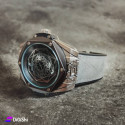 A men's wrist watch with a unique and distinctive design that attracts attention. It is made of water-resistant metal and is color-coded. It is distinguished by its large hands for easy reading of the time, and it is shock-resistant and water-resistant