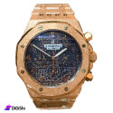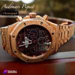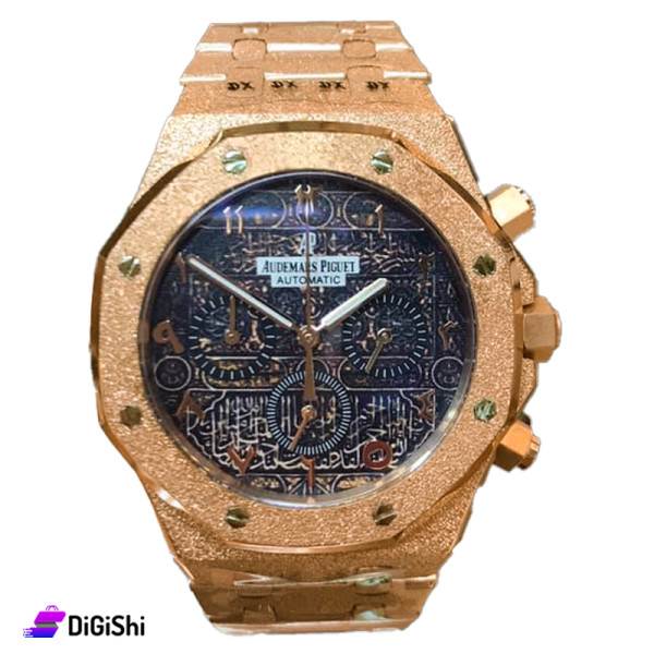 A men's wrist watch with a unique and distinctive design that attracts attention, inspired by the covering of the Kaaba, which gives it a touch of luxury and spirituality. It is made of water-resistant metal and has a guaranteed color. It is characterized by containing several features such as a chronograph machine and large hands for easy reading of the time
